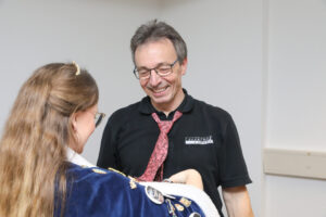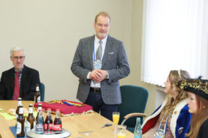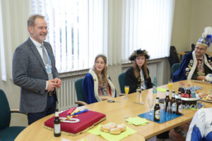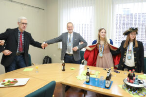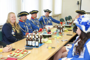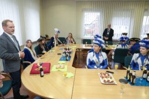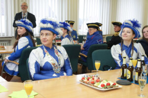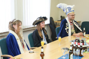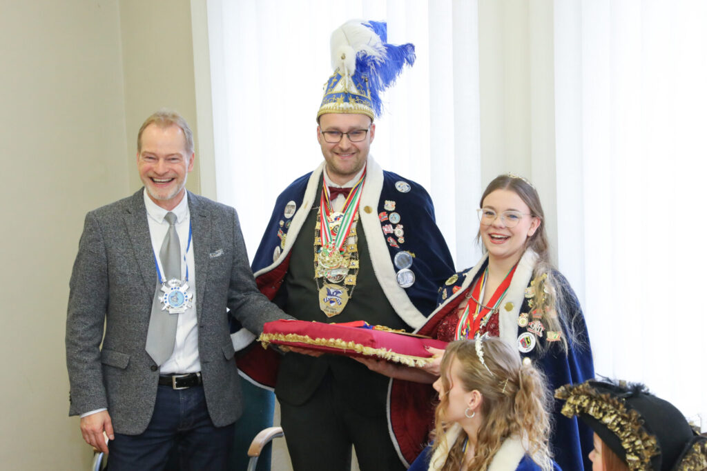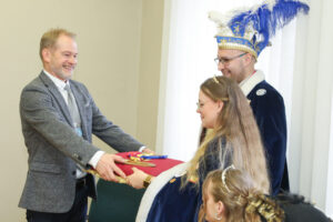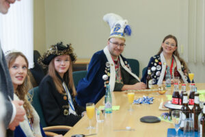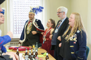 Besonders Bürgermeister Dirk Breves blieb vom närrischen Treiben nicht verschont. Ihm wurde standesgemäß die Krawatte abgeschnitten – ein Ritual, das auch bei einem anschließenden Rundgang durch das Rathaus weiteren Mitarbeitern widerfuhr. Der Spaß stand dabei klar im Vordergrund und sorgte für lachende Gesichter.
