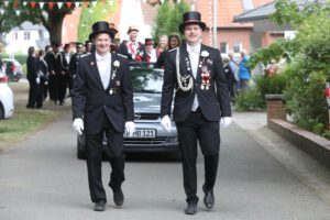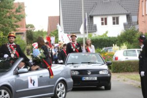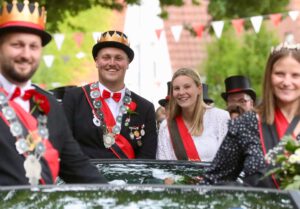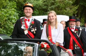 niedergelegt wurde, begann das Ausschießen für die König- und Jugendkönigswürde. Hier konnte Philipp Wolf im dritten Stechdurchgang die Königswürde erringen, der seine Frau Eva zur Königin wählte. Als Vizekönig wurde Robert Botterbrodt ausgezeichnet. Den Titel des Jugendkönigs holte sich Till Ehlert, der Zoe Soyka zu seiner Jugendkönigin wählte. Der Titel des Seniorenkönigs ging an Dietmar Meyer. Die Besonderheit: alle Titel wurden in diesem Jahr von der 2. Kompanie errungen.