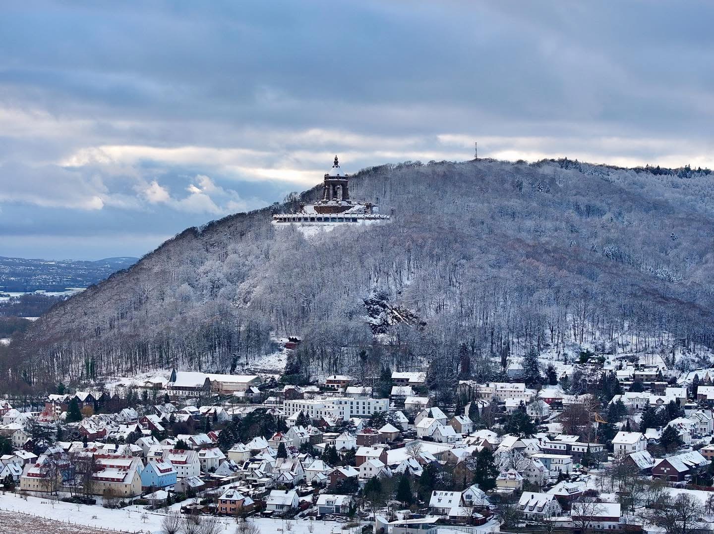 Schneelandschaft am Kaiser-Wilhelm-Denkmal. Foto: Dietmar Meier