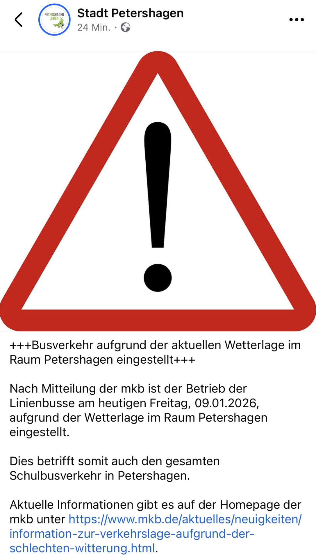 „Aufgrund der aktuellen Lage stellen wir den Verkehr vorübergehend ein. Wir beobachten die Situation weiterhin aufmerksam und entscheiden anschließend über das weitere Vorgehen“, schreiben die Mindener Kreisbahnen (mkb) auf ihrer Homepage. Gleichzeitig weist die Stadt Petershagen darauf hin, dass die Einstellung des Verkehres auch für den gesamten Schulbusverkehr in Petershagen gilt.