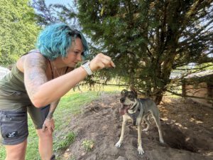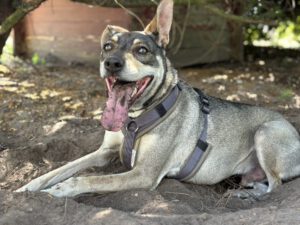 Kurz zuvor hat sich Rasmus auf der Spielwiese ausgetobt. Wasser mag der rumänische Straßenhund überhaupt nicht – Löcher buddeln ist für ihn das Größte. Rasmus kam als Junghund nach Deutschland, lebte vier Jahre in einer Familie, ehe er aufgrund von Überforderung im Tierheim Drakenburg abgegeben wurde. „Er ist ein ungeschliffener Diamant“, sagt Megan Foster über den Wildfang. Ein ruhiges Zuhause wäre für den etwa vierjährigen Rüden der Jackpot. „Wenn die Menschen dann noch bereit sind, mit ihm die Hundeschule zu besuchen – um vielleicht Mantrailing oder Agility zu machen-, wäre es perfekt“, sagt die 32-Jährige, während es sich Rasmus im soeben gebuddelten Loch bequem gemacht hat. Als aber ein paar Hundekekse fliegen, zeigt der Rüde, dass auch Suchspiele auf seiner Liste der Lieblingsbeschäftigungen stehen.